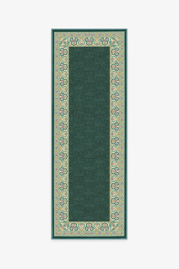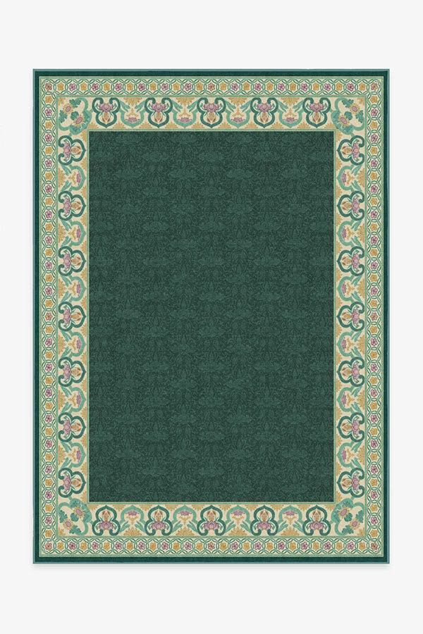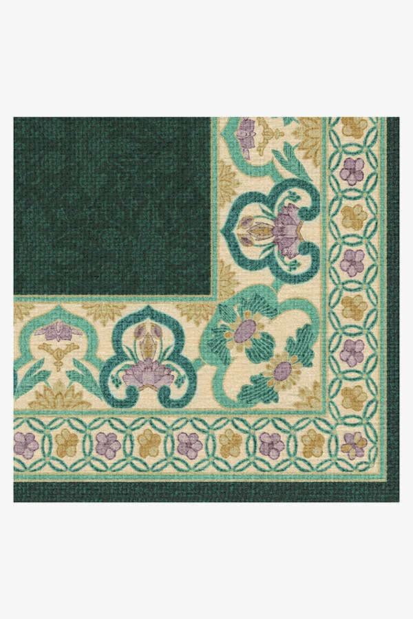 A stunning floral statement. Our Anna Sui Sundborn Castleton Green Rug takes inspiration from the fashion designer’s Fall 2015 collection which was influenced by folkloric tapestries, needlework, and crochet. The rug features a dark green center framed by an intricate floral border with pops of yellow, teal, and purple. Made from our water-resistant, stain-resistant, and machine-washable low-pile Chenille material.