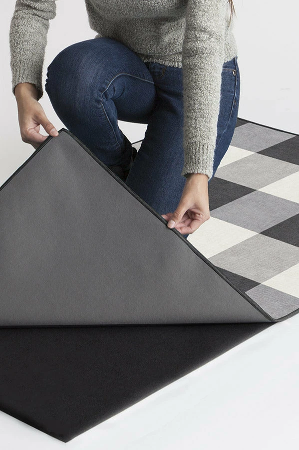 Bring a rustic charm to your decor with our Buffalo Plaid Black & White Rug. Simple yet stylish, this rug features a checkered design in high-contrast hues of black and white. Made from our water-resistant, stain-resistant, and machine-washable low-pile Chenille material.