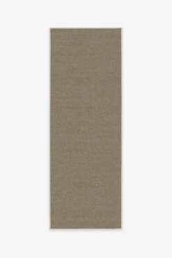 A classic rug that goes with everything. Light grey and natural colors blend to create a pretty burlap look. Its woven texture mimics jute and is both washable and easy to clean. Made with recycled + virgin polyester, and polyurethane.