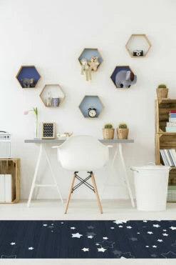 For a touch of twinkle and modern sparkle, complement your child’s decor with our Constellation Navy rug. The crispness of its stellar star design and contrasting black, blue and pearl colors, give this decorative piece a sophistication for stylish, imaginative look.