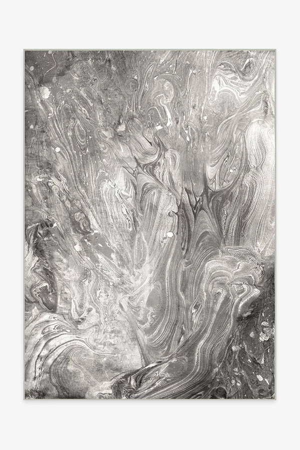 Custom designed for our Metal and Stone collection, this Cosmic Marble Grey rug features a true-to-life marbling motif that showcases swirling hues of mascarpone white and dark grey resulting in a decor piece that will no doubt become the focal point of any room.