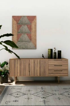 Named after the Arabic word for “a beautiful vision,” our Damali Grey Overdye Rug is a sight to behold. This Gabbeh rug-inspired design features three oversized diamonds surrounded by simple linework on a large field of grey. With its minimalistic motif complemented by a subtle, textured background, this rug lends a modern chic vibe to any room.
