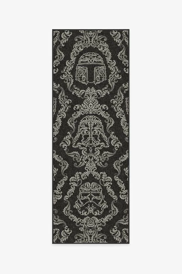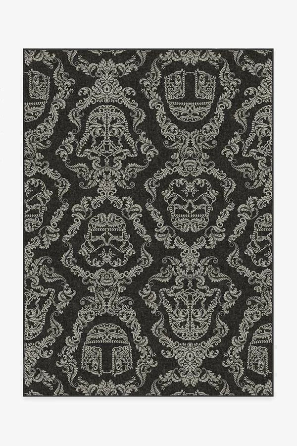 Feel the power of the dark side with our Dark Side Damask Charcoal Rug. Elegantly dark and mysterious, this rug features iconic silhouettes of the series’ most famed villains – Darth Vader, Boba Fett and Stormtroopers – beautifully weaved within an intricate floral damask pattern. A classic tale with a classic pattern, this black and white rug will charm even non-Star Wars fans!