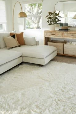 Cozy and cloud-like. Our Egret White Shag Rug offers the fluffy goodness of a traditional shag rug without the stress. Made from a flokati-like texture, this rug is water-resistant, stain-resistant, and machine-washable.