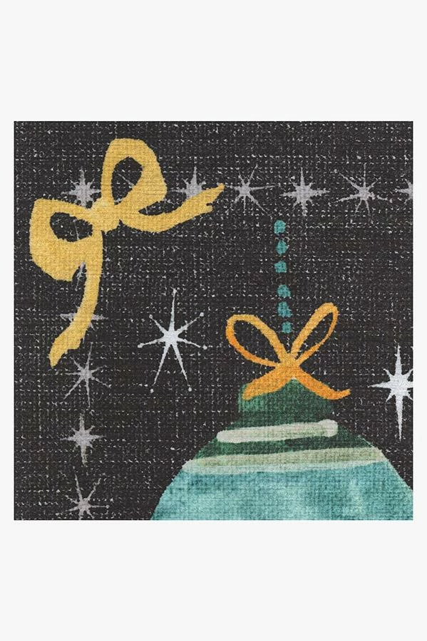 Relive your childhood yuletide memories with our Festive Garland Holiday Multicolor Rug. The colorful design features retro-style ornaments bordered by stars and ribbons in turquoise, evergreen, and farmhouse red on a distressed black background. Made from our water-resistant, stain-resistant, and machine-washable low-pile Chenille material.