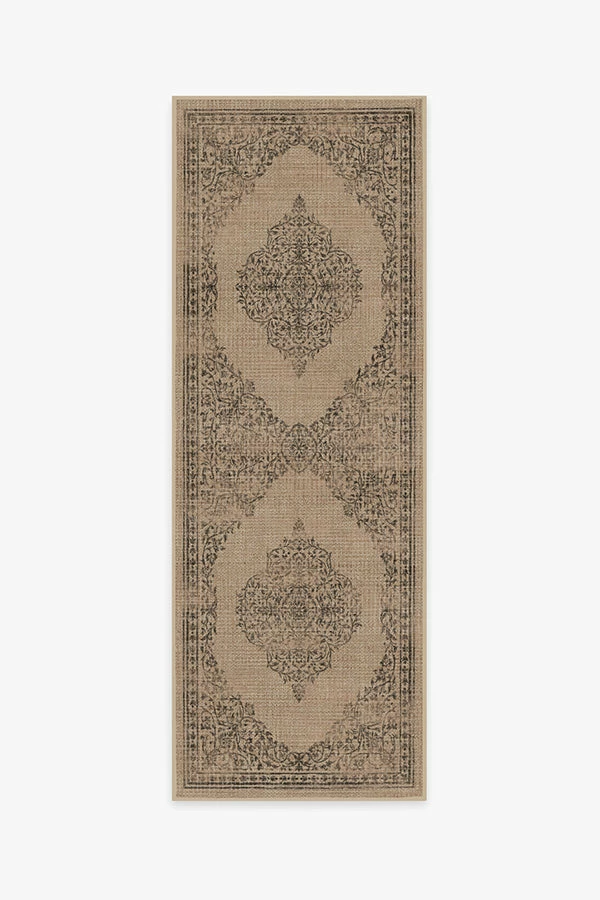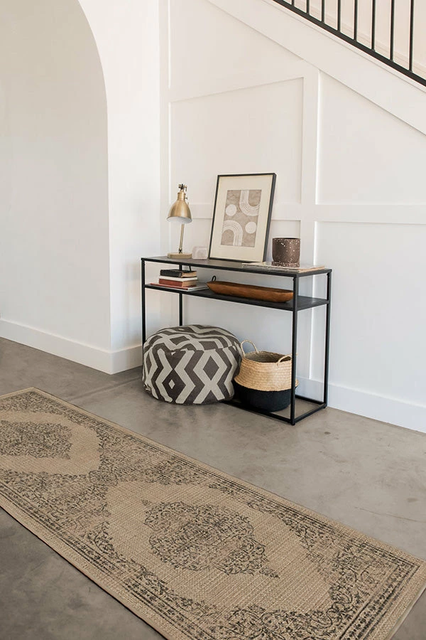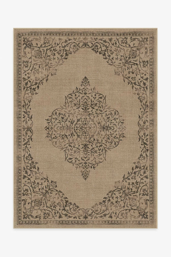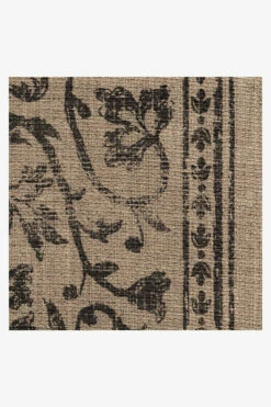 A timeless design that’ll elevate any home. Our Florence Soft Black Re-Jute Rug features an intricate floral bordered pattern inspired by botanical woodcuts in a striking color combo of weathered black on a jute-colored background. The woven jute-like material is made from recycled and virgin polyester, and polyurethane that won’t shed or fray. Water-resistant, stain-resistant, and machine-washable.