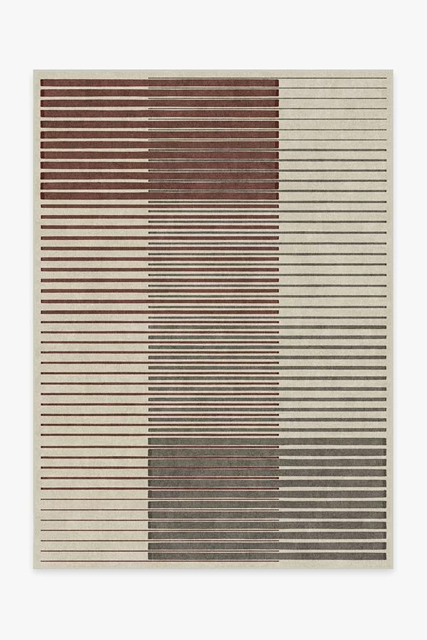 Gradasi Sumac Rug celebrates abstract expressionism and is inspired by artists Josef Albers and Bridget Riley. Overlapping lines, drawn in various line weights and tinted in burgundy red on ivory, create this rug’s elegant ombre effect, giving it a modern and sophisticated appeal.