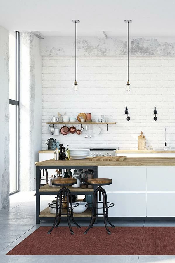 Our Heathered Solid Burgundy Rug pairs rich hues of farmhouse and amber red with a woven textured motif for a solid look that’s warm, elegant, and easy to style.