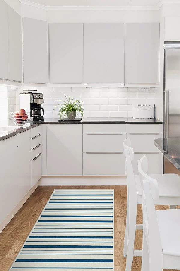 The classic motif of our Hudson Stripe Indigo rug takes a familiar but unexpected turn with bold and fine lines of blue on sand. This blue and white striped rug will instantly add a bold yet elegant touch to any room.