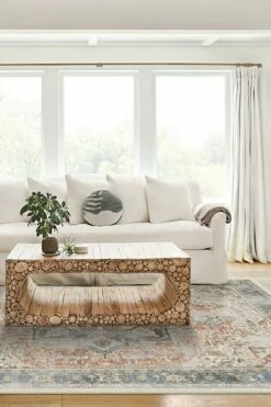 Kamran Coral Rug blends a brilliant palette of sophisticated colors with a classic, Persian-inspired design. Inspired by traditional Heriz rugs, this rug features a bold geometric pattern with a large medallion and ornate border. It’s tinted in stone blue and coral red rug, purposefully distressed for that weathered, rustic look.