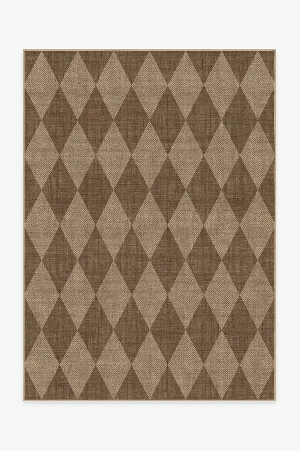 Old-world influence meets modern texture. Our Palazzo Latte Brown Re-Jute Rug features a striking geometric design inspired by the harlequin floors seen in Italian palatial buildings. With a warm palette of saddle brown on a warm beige background, this rug is the perfect balance of simplicity and boldness. The woven jute-like material is made from recycled and virgin polyester, and polyurethane that won’t shed or fray. Water-resistant, stain-resistant, and machine-washable.