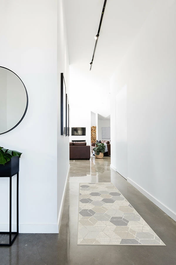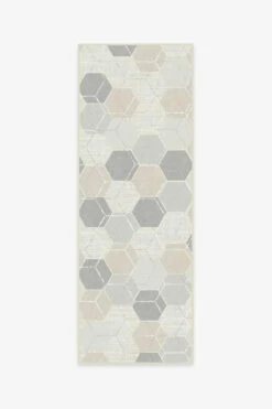 The Prisma Natural patterns an overlapping hexagonal motif with accents of sand and grey.