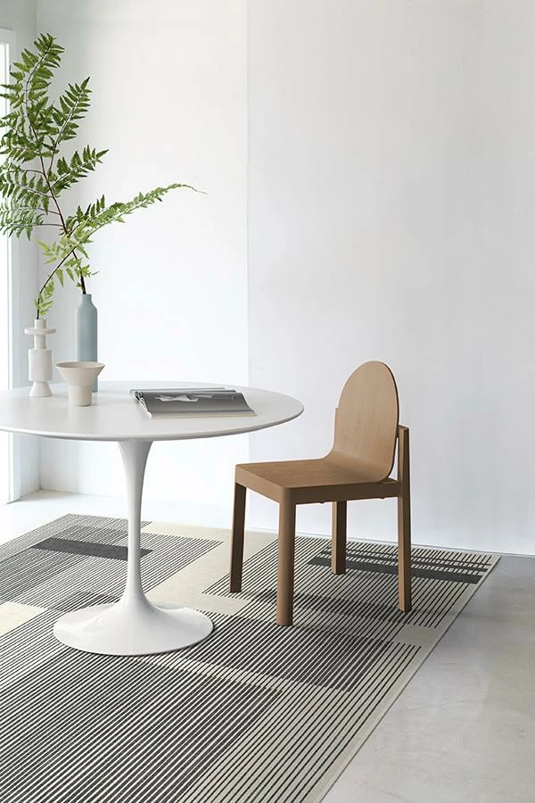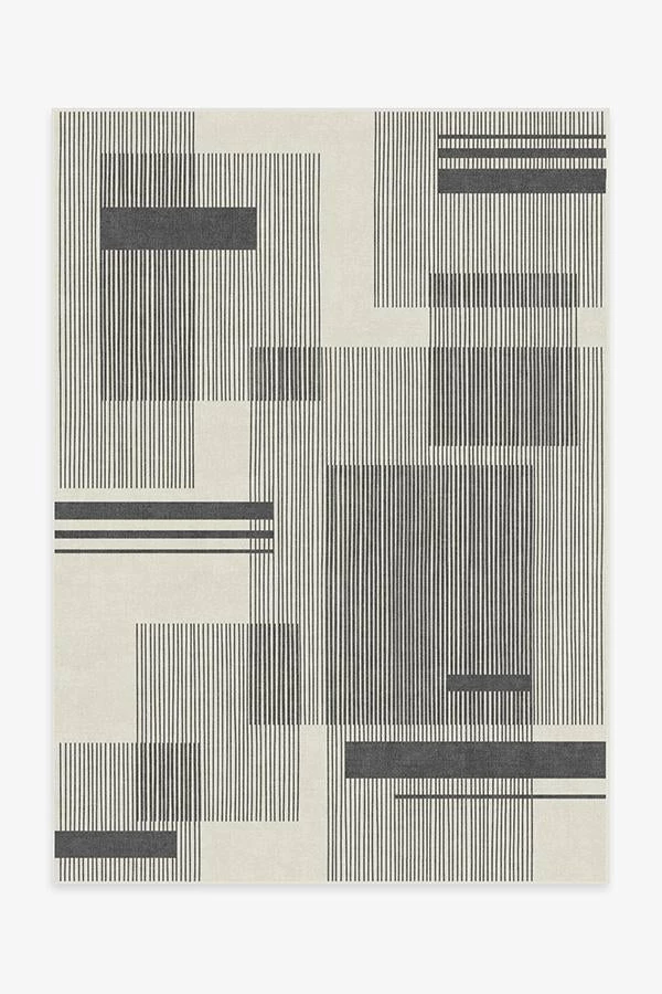 Like a piece of modern art for your floor! Inspired by the works of Bauhaus artist Josef Albers, this abstract rug features overlapping lines that form squares and rectangles in grey on a light cream backdrop. Water-resistant, stain-resistant, and machine washable.