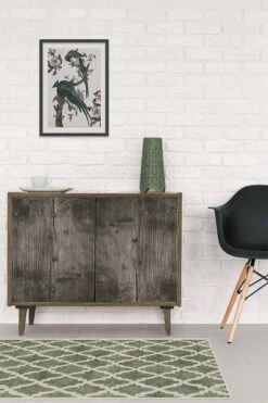 The Soraya Trellis Sage Rug perfectly encapsulates the Moroccan rug motif with its diamond design. Colored in a textured palette of sage and fern green on bone, this timeless green trellis rug is sure to energize any urban or suburban interior.