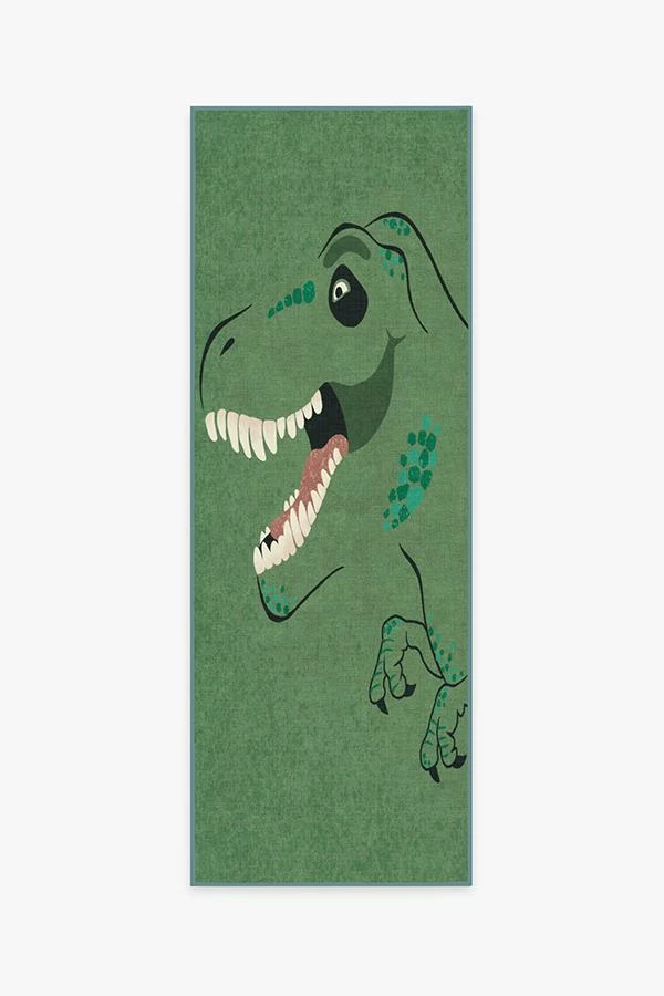 We’ve captured this prehistoric carnivore’s best side with our Tyrannosaurus Rex Rug. Tinted in muted and textured tones of green, black, and ivory, this rug features the side profile of this dynamic smiling dino, making this the perfect room accent for any T. rex fan.